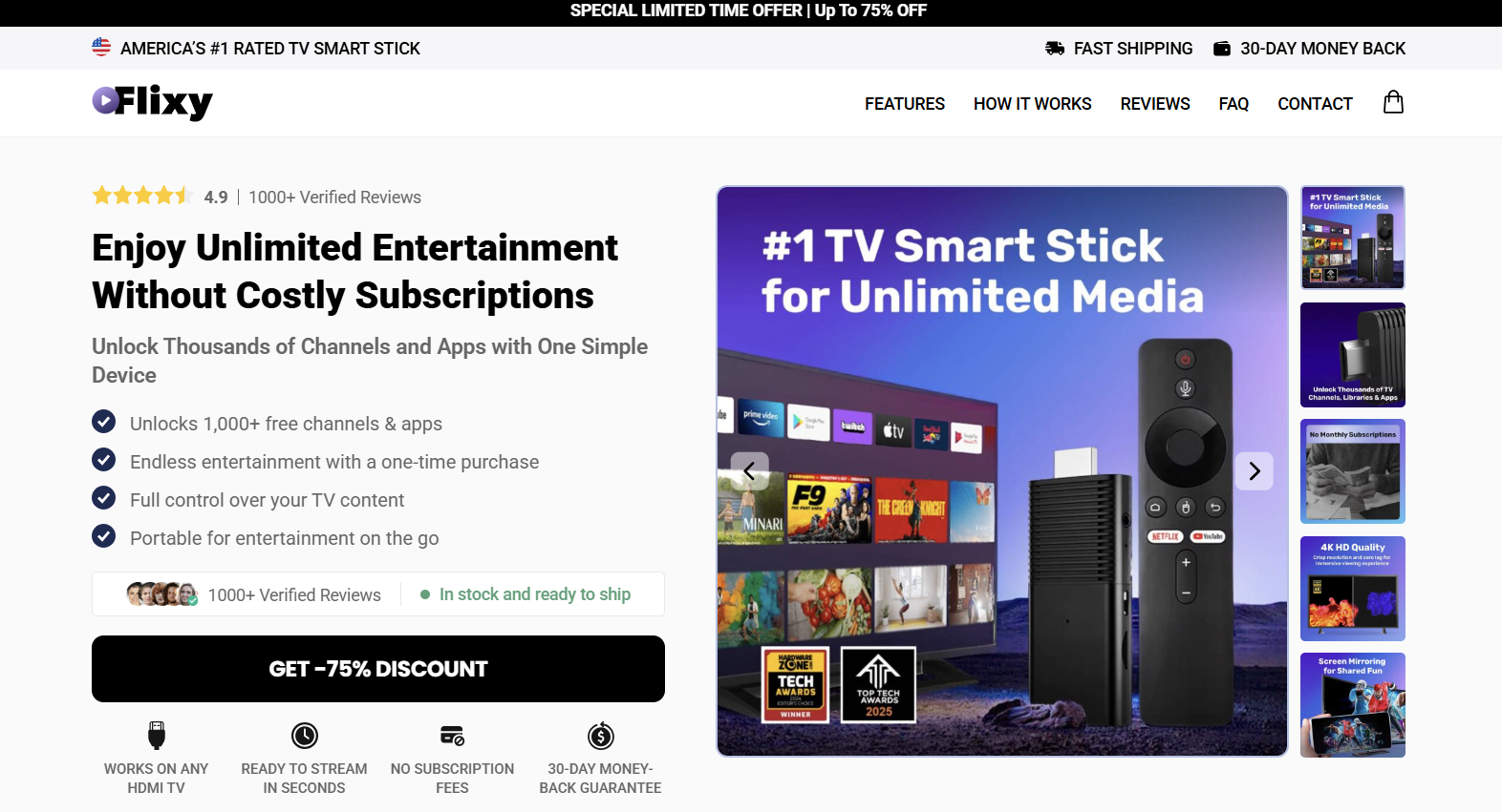 The Flixy TV streaming stick is positioned as a simple and affordable way to access digital entertainment without relying on traditional cable or satellite television. Designed for ease of use, portability, and cost savings, Flixy claims to turn almost any television into a smart entertainment hub.